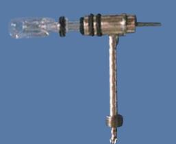 由同軸玻璃霧化器的內(nèi)管吸入被測溶液,外管接壓縮空氣,噴口上套有可取下的撞擊球帽(不同霧化器間不可互換),玻璃霧化器固定在不銹鋼保護套內(nèi),不銹鋼外形與各型號主機霧化器座相適應(yīng),內(nèi)管插接特制等內(nèi)徑聚乙烯限流進液管,或插接不銹鋼管—硅膠管—聚乙烯限流進液管(不易脫落,硅膠管不耐有機溶劑)。